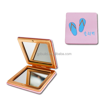 Specchio tascabile in metallo quadrato rosa all'ingrosso con doppio lato Design pieghevole Logo personalizzato in rilievo Logo da viaggio specchio cosmetico